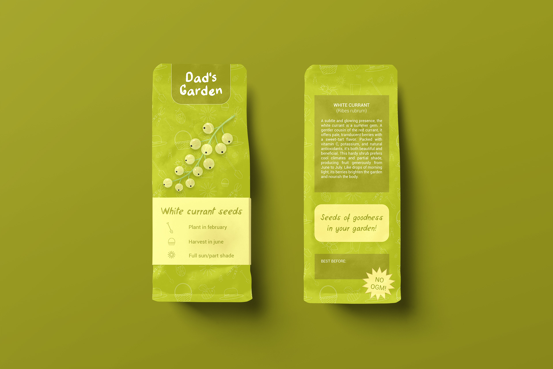 “Dad’s Garden” is a label design project inspired by my father’s vegetable garden, a real place that changes with the seasons but is always full of care. From this personal experience came the idea for packaging that tells the story of a wholesome product, grown with love and care, a true farm to table, to soul experience.